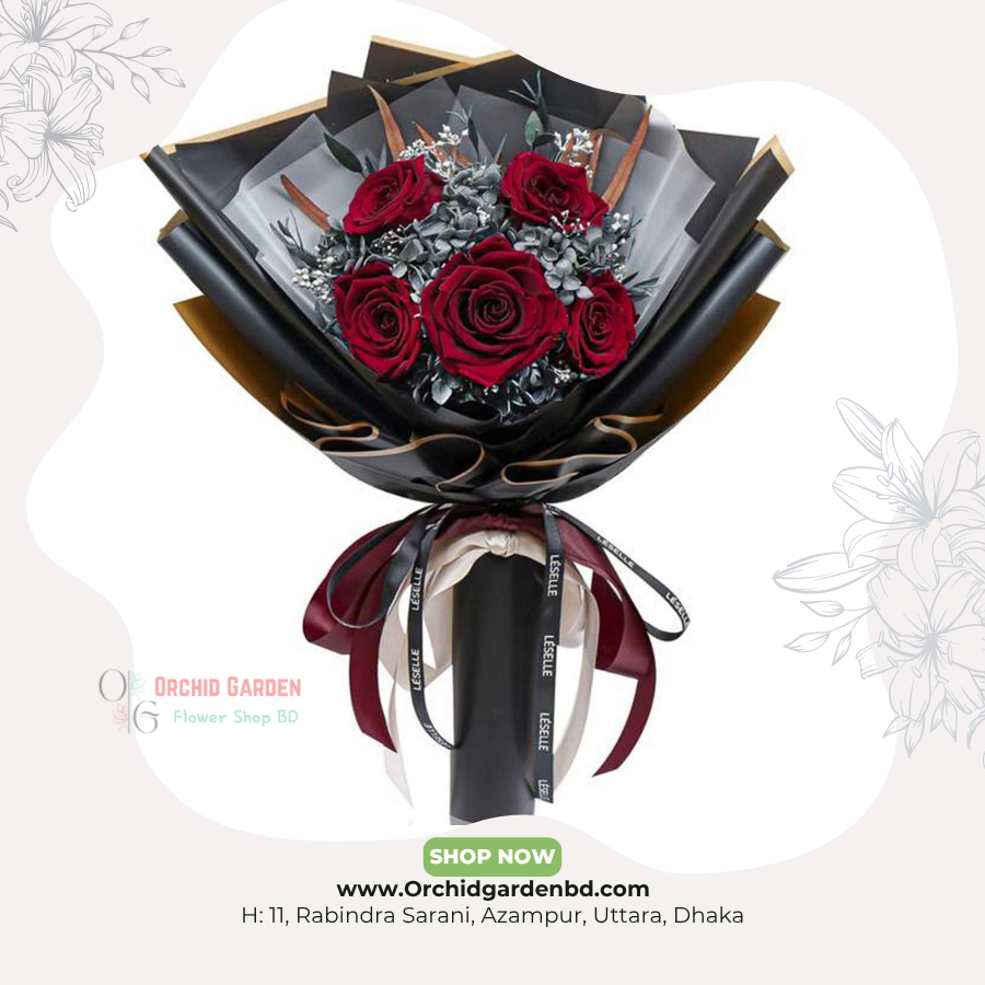 black gold bouquet BD, royal red rose bouquet Bangladesh, luxury rose gift BD, premium flower bouquet BD, valentine bouquet BD, Orchid Garden luxury flowers