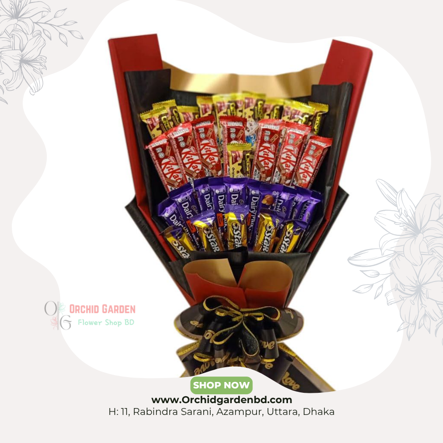 mixed chocolate bouquet BD, premium chocolate gift Bangladesh, luxury bouquet BD, Orchid Garden premium gifts, KitKat Snickers Dairy Milk bouquet
