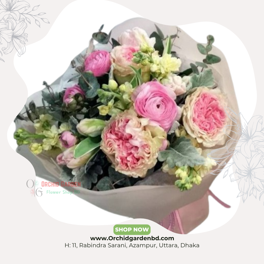 pastel bouquet BD, garden rose bouquet Bangladesh, ranunculus flowers BD, luxury pastel bouquet, Orchid Garden premium flowers
