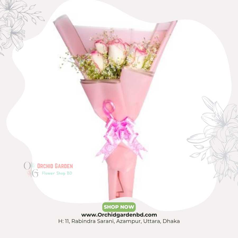 pink bouquet, white pink rose, rose bouquet bd, soft pink wrapping, gypsy flower bouquet, gift flowers dhaka, elegant roses, orchid garden bd, premium bouquet, romantic flower gift, pastel bouquet, fresh roses