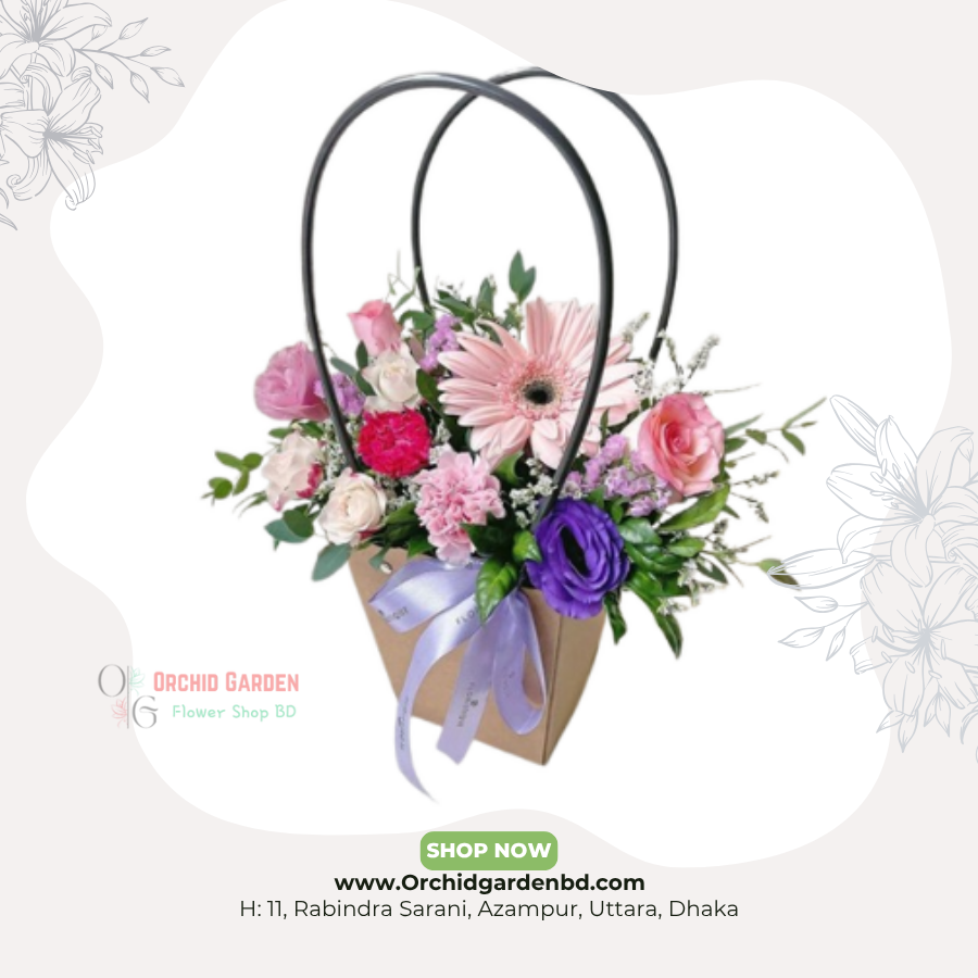 handbag flower arrangement BD, mixed flower gift Bangladesh, gerbera bouquet BD, premium flower box BD, Orchid Garden exclusive gift