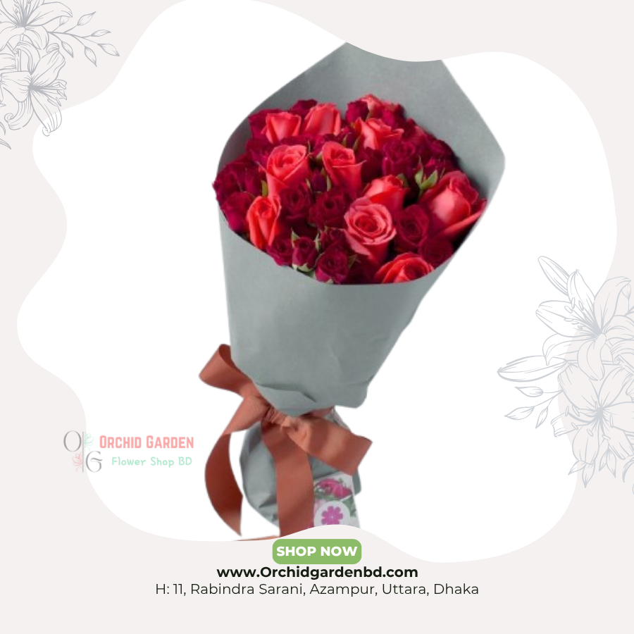 red rose bouquet BD, mixed red bouquet Bangladesh, valentine bouquet BD, love flowers BD, premium rose gifting, Orchid Garden bouquets