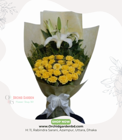 Yellow Roses & White Lily Premium Bouquet
