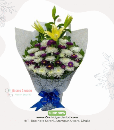 Yellow Lily & Purple-White Bouquet