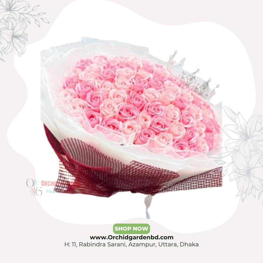 99 roses BD, pink rose bouquet Bangladesh, princess crown bouquet, proposal flowers BD, luxury bouquet BD, Orchid Garden premium roses