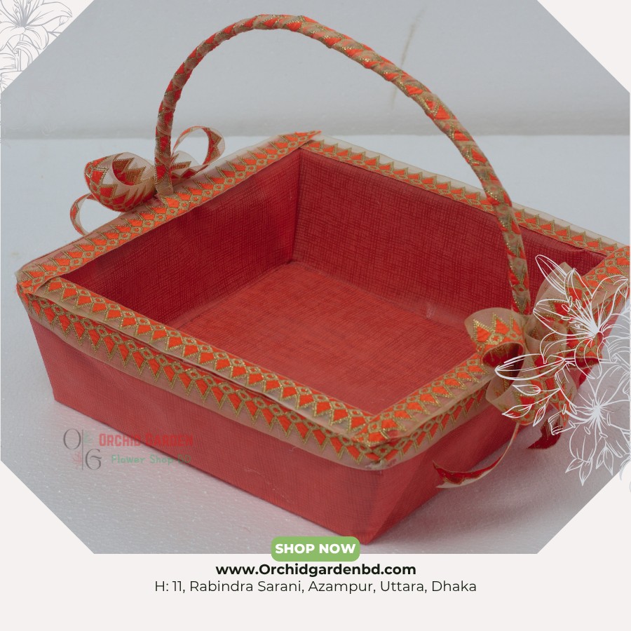 রেড-গোল্ডেন ট্র্যাডিশনাল ডিজাইনের এই প্রিমিয়াম হ্যান্ডেল বাস্কেটটি বিয়ে, গায়ে-হলুদ ও বিশেষ উপহার প্রেজেন্টেশনের জন্য একদম উপযুক্ত ও এলিগ্যান্ট।