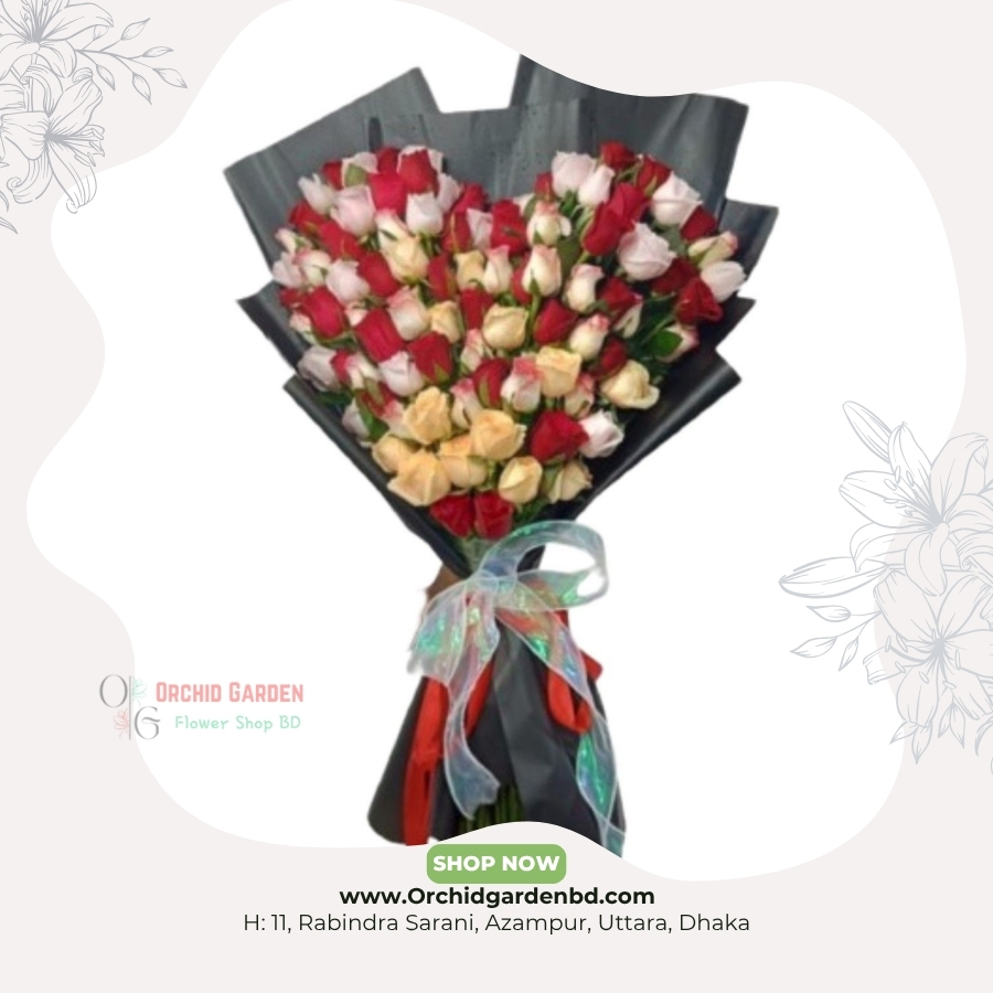 100 rose mixed bouquet—romantic gifting, proposal, anniversary ও premium celebration surprise এর জন্য grand elegant design।